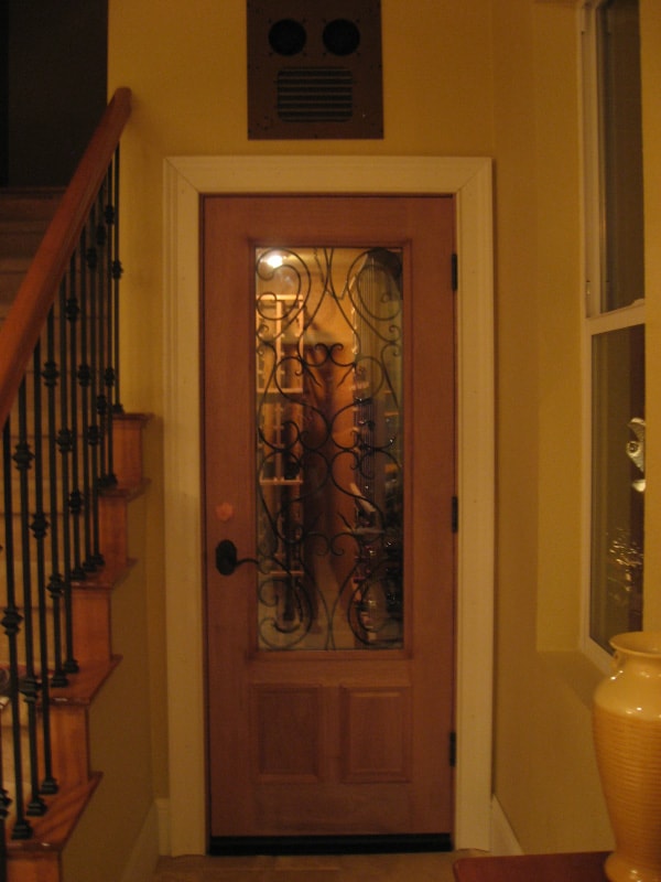 We finally got tired of seeing the mahogany wine cellar door taking up one car slot in our garage. So we got our trusty contractor in to install the door.