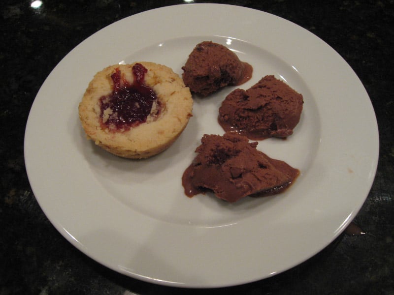 This past weekend, Bob and Sandy (neighborhood friends) dropped by for dinner and board games. Instead of spending a couple of hours making dinner ahead of time, Clint and I strolled through Los Gatos and ordered take out from one of our favorite restaurants, Green Papaya. When we got home, we emptied all the dishes from their styrofoam containers to colorful serving plates – the result was a dinner that had all the benefits of a meal I had slaved over without the work. A new experience that is very tempting for future dinner parties! I did make lemon shortbread cookies with strawberry jam centers that looked like an early Valentine treat for dessert