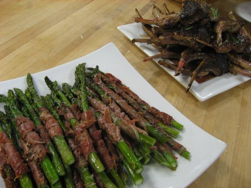 Although the lamb and cheese get top billing, the Lobster and Wild Mushroom Risotto, the Prosciutto-Wrapped Asparagus and the Tiramisu Trifler were wonderful as well. Unlike our previous class, I could definitely see myself using these recipes at a dinner I was hosting.