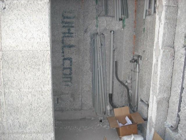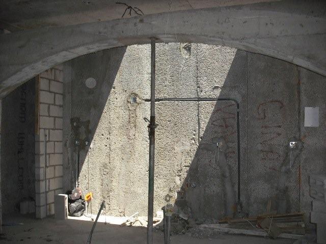 Kitchen: Wall where the sink, stove and refrigerator will go.