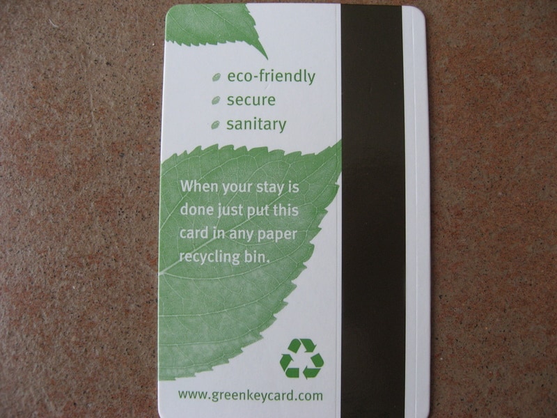- A hotel in Colorado issued a press release when they made the switch last year to “Green-Key” and said “The hotel currently uses approximately 11,000 plastic keycards per year. When these keycards are lost or fail, they end up making their way to the landfill. The paper keycards can be recycled along with our mixed paper recycling.”