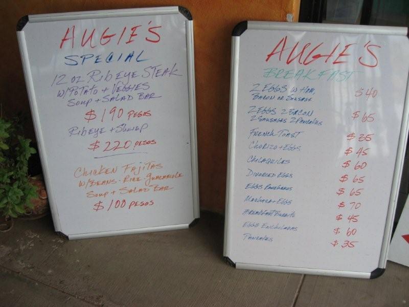 Augie’s is to the left of the sign still on what use to be “Nellie’s Place”. Right on the Malecon, you can’t miss it.