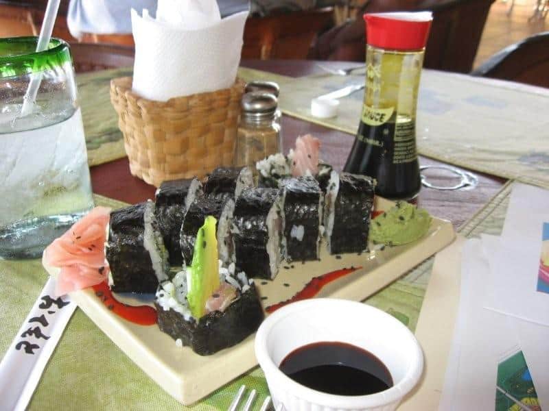 My cravings for sushi began on our flight down to Loreto Bay where we just happen to sit next to a gentleman who heads up the Oregon fishing club. Several of their club members were flying down to take advantage of the great fishing in the Sea of Cortez. Thoughts of large sashimi slices of yellowtail and dorado made me even consider rushing out to get a fishing pole and panga boat when the plane landed in Loreto.