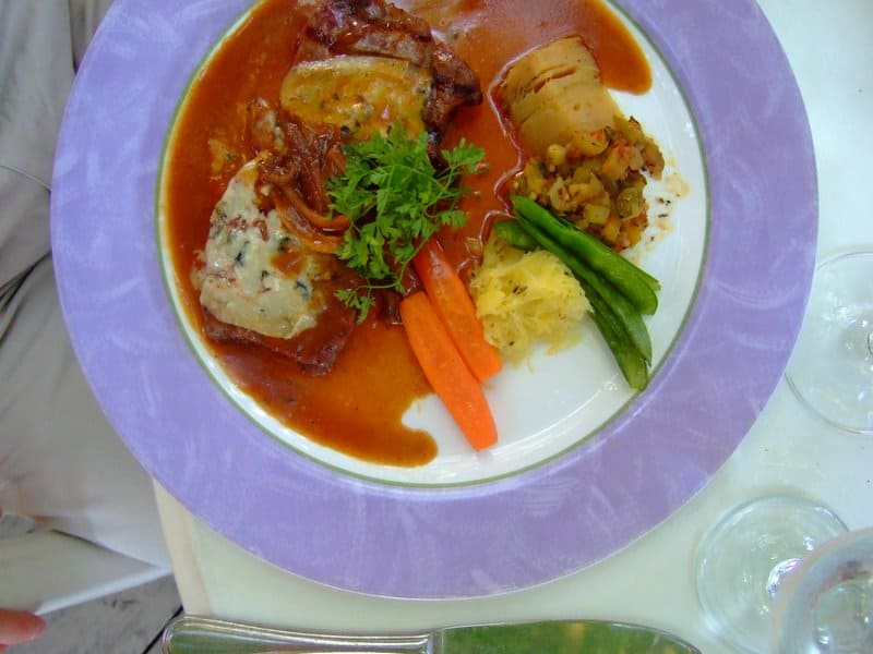 The wine list was impressive and the waiter was knowledgeable and helped us select a 2004 French rouge from Cahors.
