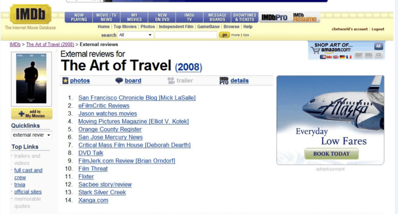 - Loni’s review of the movie “The Art of Travel” earned a spot in the IMDB movie review site