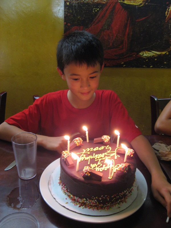 Our nephew Gerrit celebrates his birthday with diet-destroying ice cream cake from Cold Stone Creamery.