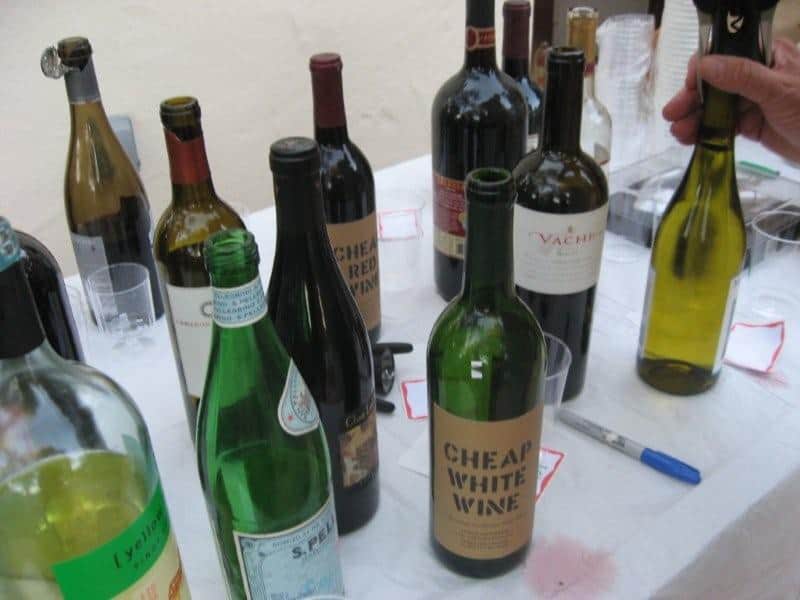 Who brought the Cheap White Wine and Cheap Red Wine?