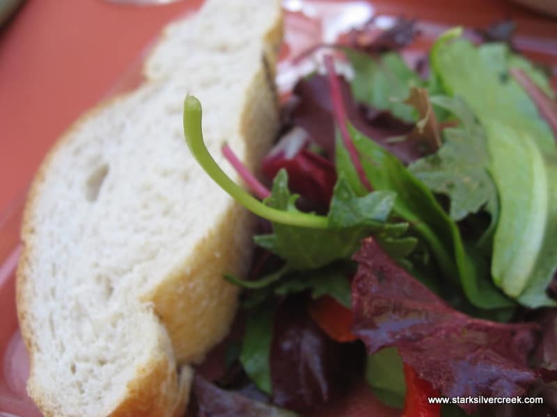 A salad was the starter to the meal. It was good, but the Paella and wine was definitely the stars of the meal.
