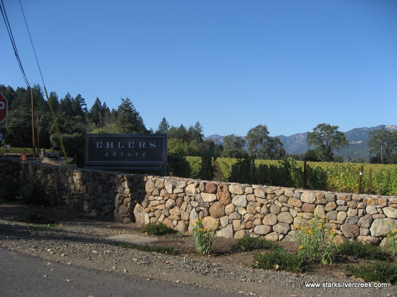 The Ehlers Estate sign at the front of the winery. I shot this from out the car window as Clint and I were leaving – happy and satisfied.