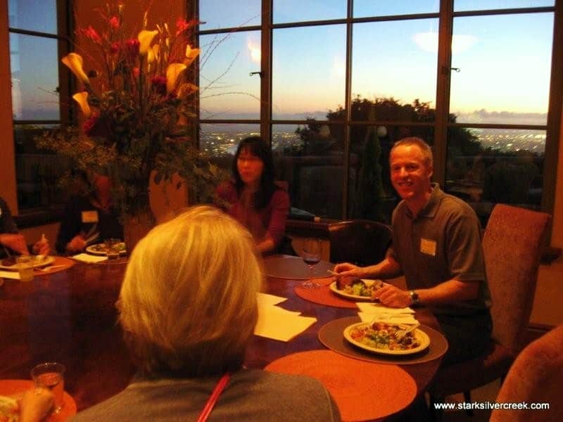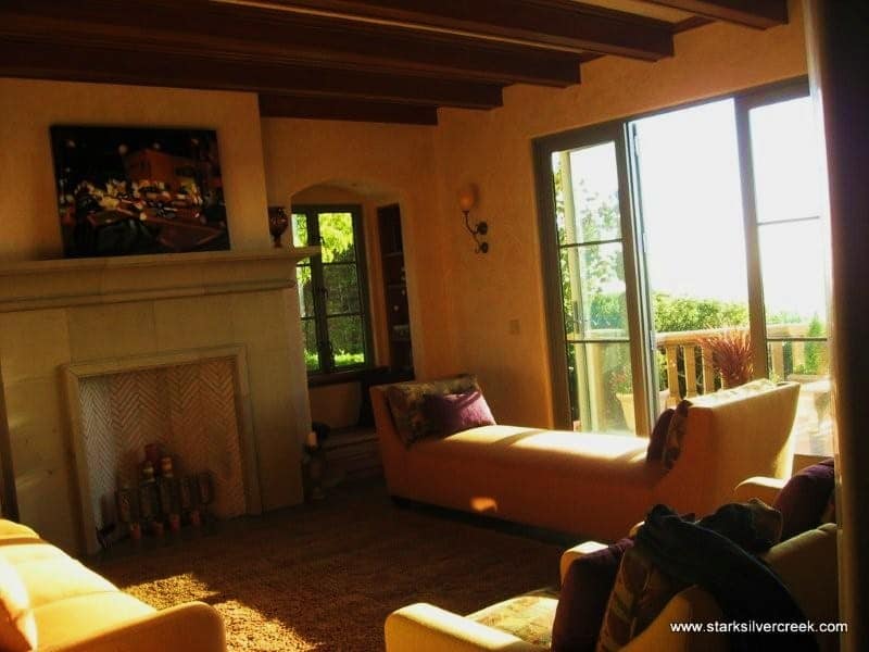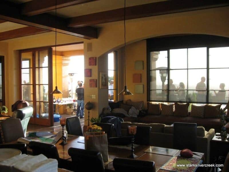 The rain that was in the Bay Area earlier has cleared and everyone is outside enjoying the wine, food and breathtaking views. The home is designed and constructed by Mike – a true labour of love.