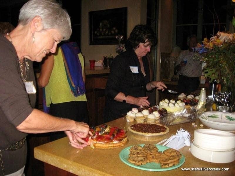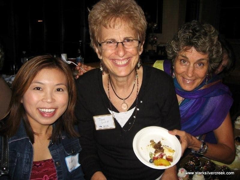 As the evening comes to a close, we are all on sugar and caffeine highs. Sharon fesses up to her love of desserts, I quickly hide my huge plate of desserts from the camera.