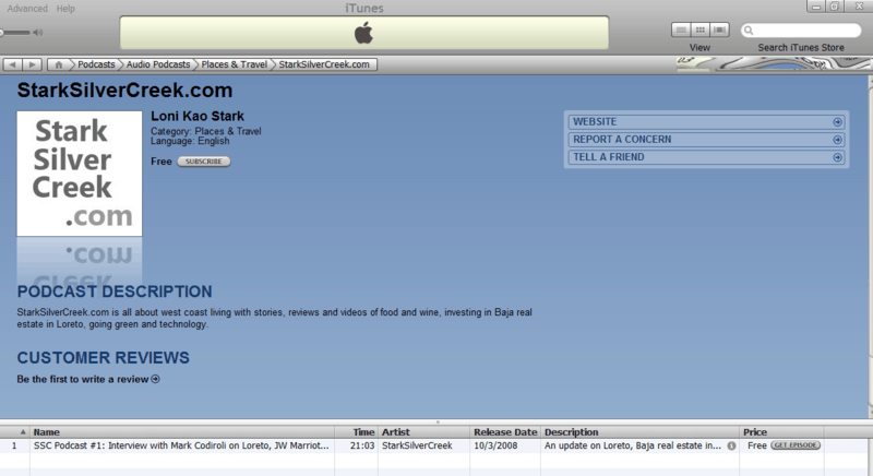 Just subscribe to the StarkSilverCreek.com podcast series now available on iTunes – free of course. We already have one episode (see ‘Podcast: Interview with Mark Codiroli on Loreto, JW Marriott and Real Estate in Baja‘) that many of you have told us was informative and fun. Thanks, we have more on the way, and look forward to your feedback and ideas on people and topics.