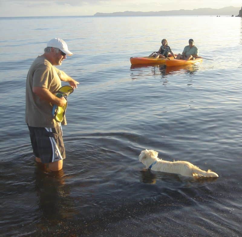 After Rich and Jean had given the frightened dog a bath, they contacted their friends, Ariel and Peter, residents of Loreto Bay. Ariel and Peter had been talking about getting a dog. They welcomed that dog into their home that night. Now Charlie is probably the happiest, most playful dog you will ever meet. Here is a link to a few seconds of Charlie and Peter walking on the beach: