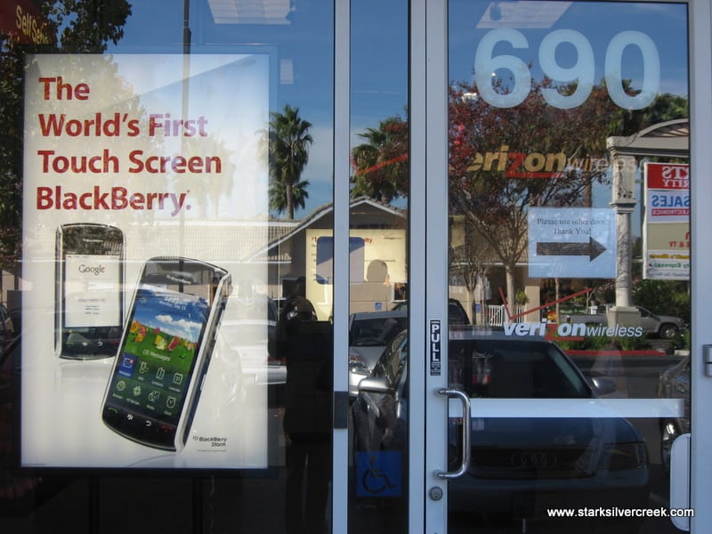 My girlfriend, though, struggled with the keyboard. It seemed she was not pressing hard enough on the screen which depresses as a giant spring-loaded key. All of her letters were wrong, and she quickly put it pack on the Verizon display stand: “I love my BlackBerry Curve!”.