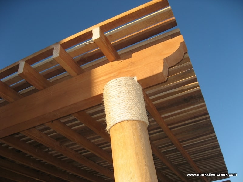 The pergola is now complete with the top wooden slats in place.