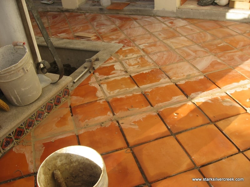 The courtyard tiles were being installed when we visited our place on Friday. I was concerned because I had gotten the upgrade for the inset tiles and didn’t see them here. I emailed Jesus when I saw this and even took a photo and emailed it to him. He surprised us by showing up on our site. The Ginax contractors explained that they actually cut out the squares for the inset tiles after the saltillo tiles are set first. Strange but figured they were the experts on this.