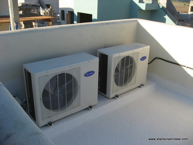 The air conditioning units are installed on the roof. There are three of these units; one for the 2 bedrooms and the other for the great room.