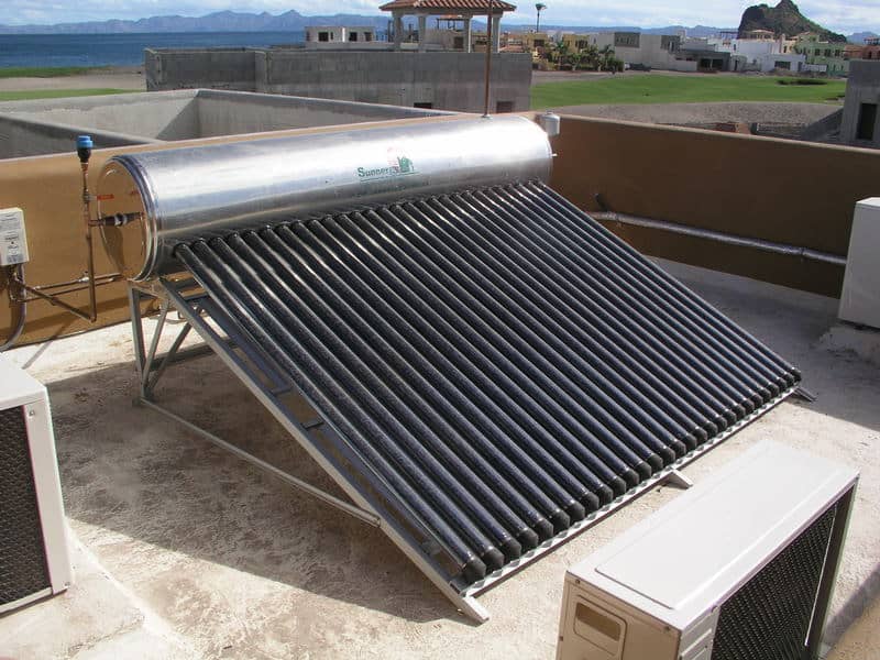 Of all the photos, I found this one to be the most interesting as this solar water heater is very different than the ones I saw being installed in the later Founder’s neighborhood units. Anyone know if there are signficant different benefits/disadvantages between this design and the one shown in the photo below?