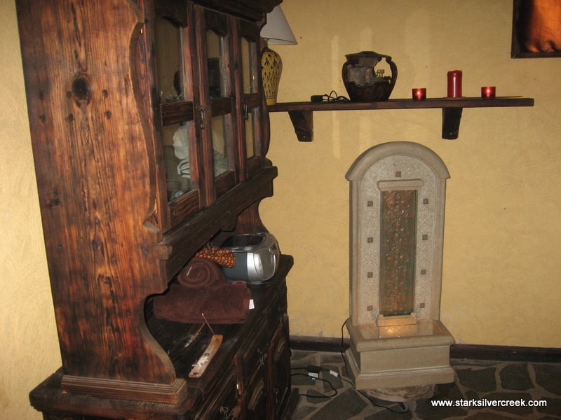The fountain in the treatment room. There was also a lot of candles that set the mood in this quiet, dark room…so different than the sunny bustling streets of Loreto that was outside.