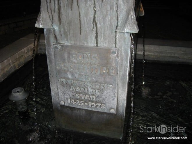 We also swung by the town hall which was beautiful and Gothic inspired as well as another infamous sculpture, Fonske (Fons Sapientiae – Latin for “Fountain of Wisdom”) depicting a student reading a book held in one hand while letting wisdom flow from a glass in the other hand.