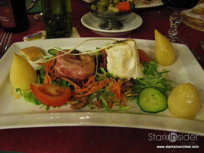 I ordered the Bresaula with pears, vinaigrette balsamico and parmesan (10.50 euros) and the Spaghetti with sea fruit (10 euros). The highlight was the Bresaula which turned out to be a large dish. The pears were juicy and tender and the cheese wrapped in procuitto was to die for. I started off thinking there was an awful lot of cheese on the plate, but as I started to dig into the dish, I realized the cheese was so light, mild and creamy that it paired wonderfully with the thin salty meat. In fact, the dish was so good that by the end of it, I had long forgotten my camera parked on the side of the table and forgot to take any photos of the rest of the meal.