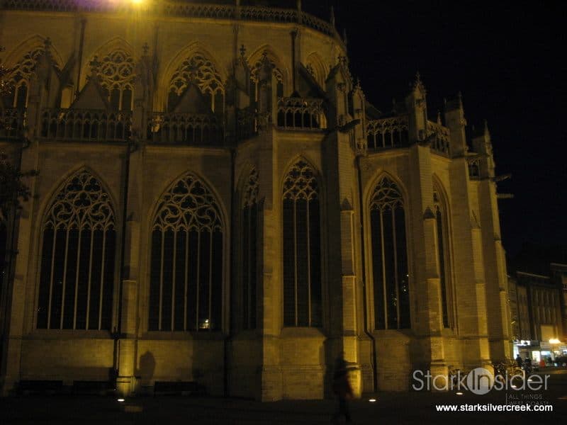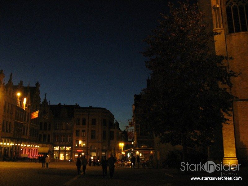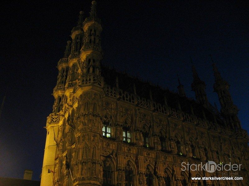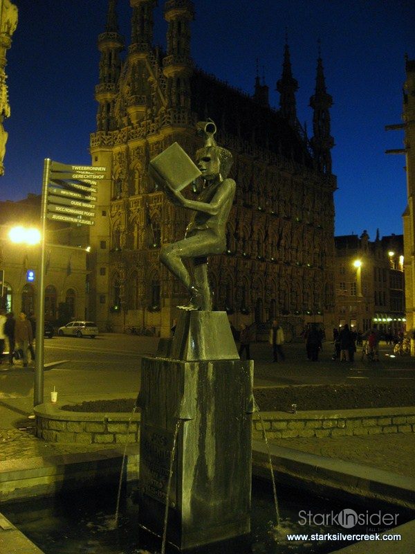 We strolled around on this particular brisk evening. We walked past the beautiful Katholieke Universiteit Leuven which was founded in 1425. In front of this traditional building was a modern sculpture of a long metal needle and an upside down green bug that resembled a grasshopper. I was told when the sculpture was first installed, it caused a lot of controversy. I smiled, it seems that every city or town has such a building or sculpture which inspires much debate.