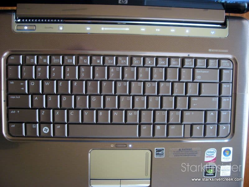 I’m a long time ThinkPad user, probably for almost 10 years now, so I’m used to the Lenovo (IBM)-style keyboard, trackpad and TrackPoint. So I was somewhat surprised to find this HP keyboard to be excellent. I found the layout intuitive. Dedicated page up and page down keys are stacked along the right side with the home and end keys.