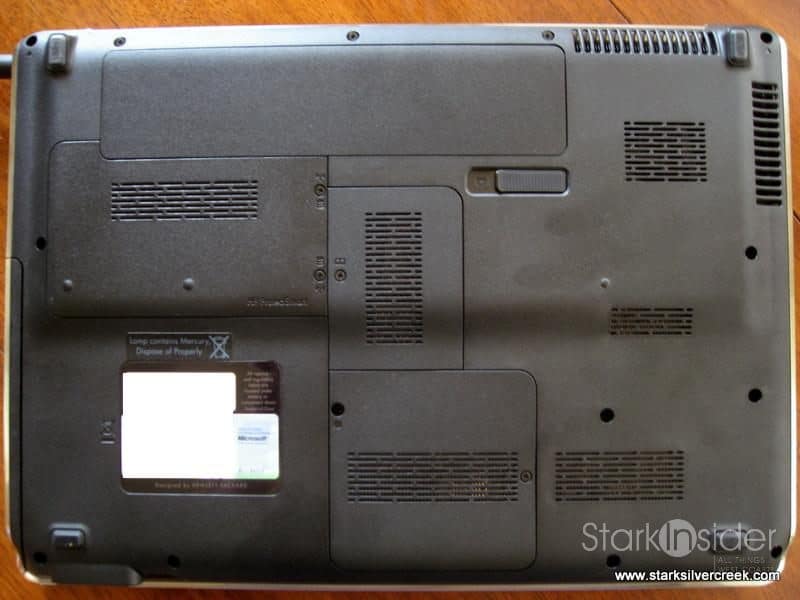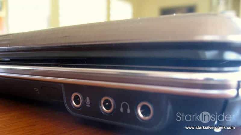 On the front are standard microphone and headphone jacks (2). Hard drive and memory expansion is available on the bottom by removing a few screws (one for memory).