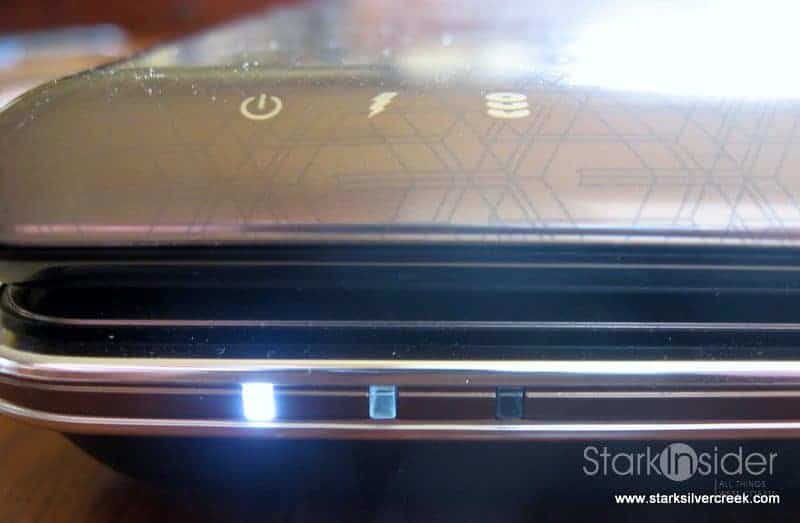 I had no issues with wireless performance. Once connected to my wi-fi network, the singal remained strong throughout the house and outside, and did not drop. A tiny backlit button along the control strip below the screen allows you to toggle wireless power.