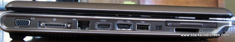 This is another strong point. There are 4 USB connectors (2 on each side), a firewire port, HDMI display connector, ExpressCard expansion slot, multi-card memory reader slot, ethernet, external display, eSATA high speed data connector and docking station port. Quite a list! Suffice to say, you will be covered for many years to come in terms of expansion.