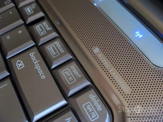 The speakers are by Altec Lansing. They sounded very good considering it was a laptop. The sound has a pleasing quality with clean timbre and decent volume levels. Again, compared to my trusty ThinkPad, the HP was leagues better. For truly experiencing the best in music or movies I use headphones, but for the occasional YouTube video, market report, or John Stewart these will do well.