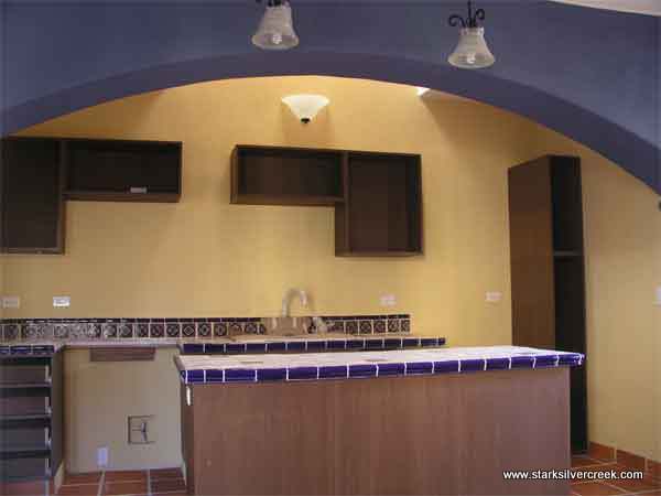 Kitchen with counter tops. Please note that the cabinets shown here are only the cabinet boxes. I’ve been told solid wood still needs to go over all the boxes. I have been trying to determine the quality of the box construction. Appreciate any insights from those who know about cabinet construction. I know the boxes are not solid wood…is this a concern? For those who moved in early in Founder’s, can you check and let me know if your cabinet box construction is solid wood. I recall it was.