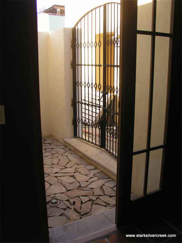 Looking out into our smaller courtyard. A gate is in which is great. Unfortunately it is the wrong type. We had selected a solid wood panel gate (Gate #2).