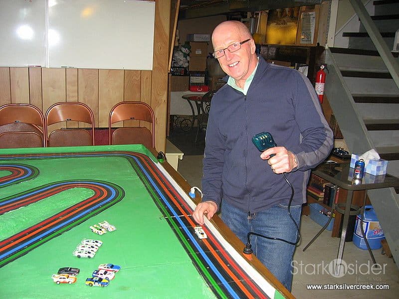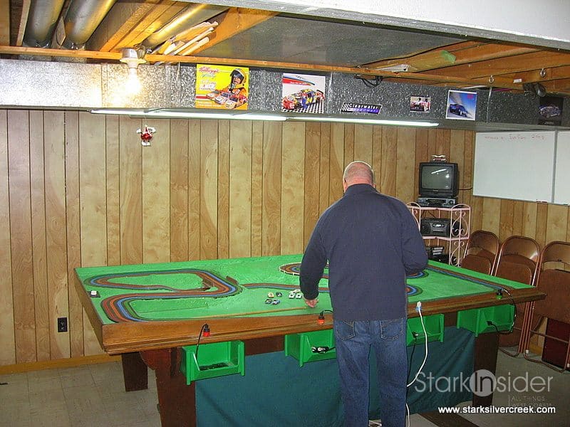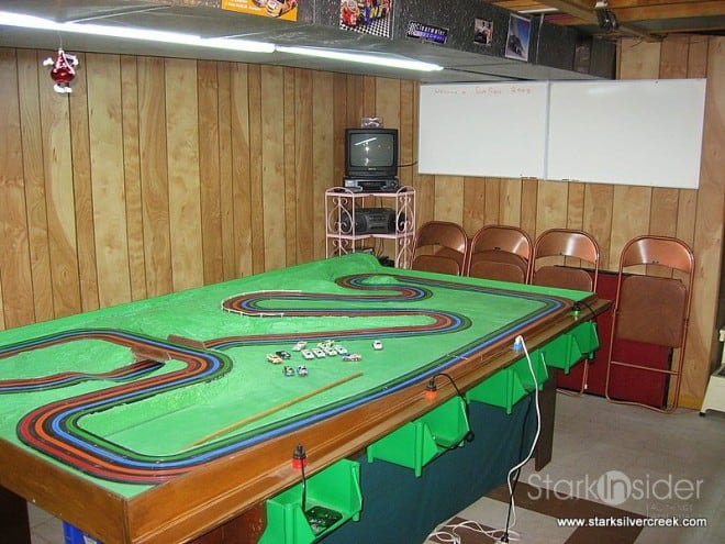 On weekends, the same room would fill with laughter, hollering, spirited discussion, and the heated intensity of a full-tilt slot-car tournament, where the most adult of competitive instinct is unleashed.