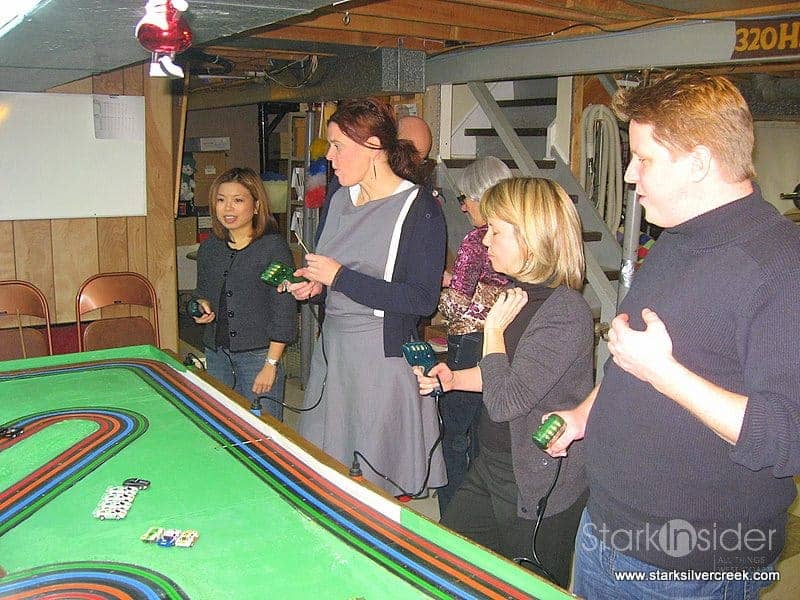 You may wonder the outcome of our 2008 reunion race. I’ll just say someone in the family has a slight advantage having grown up surrounded by slot car professionals eager to teach him the nuances of pulsing the controller just right, pacing through the chicanes, and using the lane bends to subtly displace a racer on the adjacent track. Thankfully, this time I was not wearing my lederhosen.
