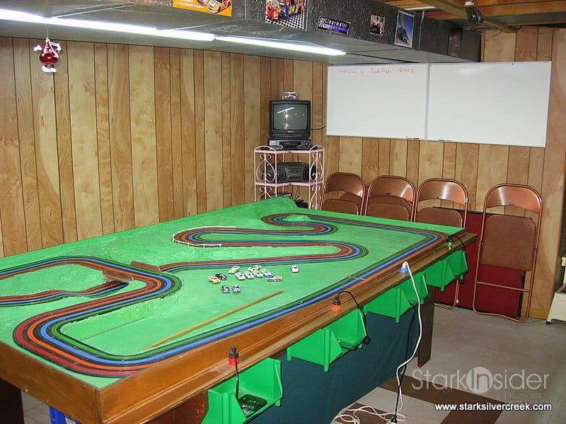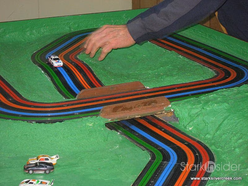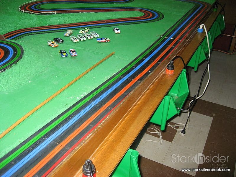 My father had the same vision over 35 years ago when he fulfilled a 4-lane slot car fantasy. I grew up with the sound of mechanical, magnetized cars whizzing around a curvy track, with the occasional click of a stopwatch as my father set new lap records. The slight smell of oil and rubber wafted across the basement.