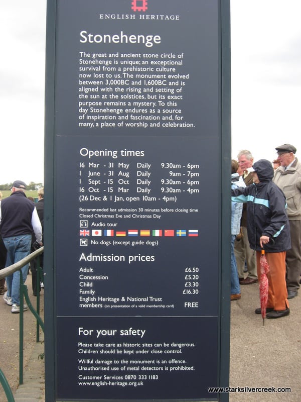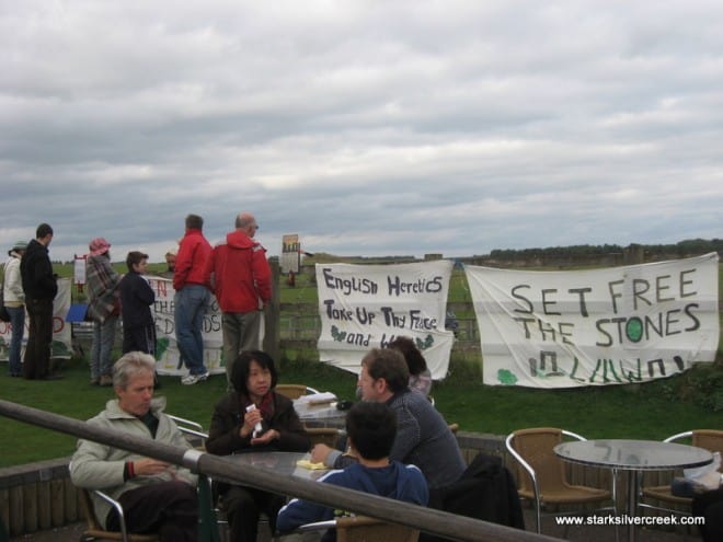They say that necessity is the mother of invention. If that is true, then capitalism is the father. We were herded like sheep past a group of hippie-type protestors with signs such as “Free the Stones”. Then we waited as our tour guide purchased our group tickets and we were let one by one through the revolving metal gate.
