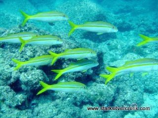 After a couple hours we pulled to shore and Pancho brought us our lunches and drinks. The Inn’s box lunches are very generous and we shared our food with Pancho. He also showed us a two foot shark that he had caught that morning. After lunch Pancho suggested a spot for us to stop for snorkeling. We retraced our paddling route for an hour and soon arrived at the cove he had suggested. Along the way one of the jumping fish managed to startle on of the ladies by jumping into her front kayak seat.
