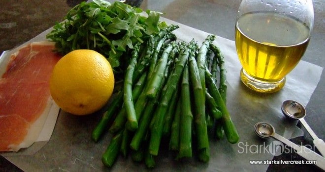 - 1 pound of asparagus, as thin as they come, trimmed