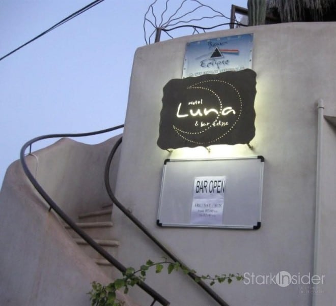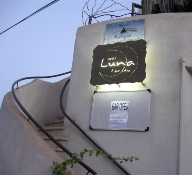 The saying “don’t blink or you’ll miss it” truly applies to Hotel Luna & Eclipse Bar, a narrow and unassuming 2 story building adjacent to the Giggling Dolphin Restaurant & Dolphin Dive Center, 1 block west of the Malecon on Benito Juarez street.