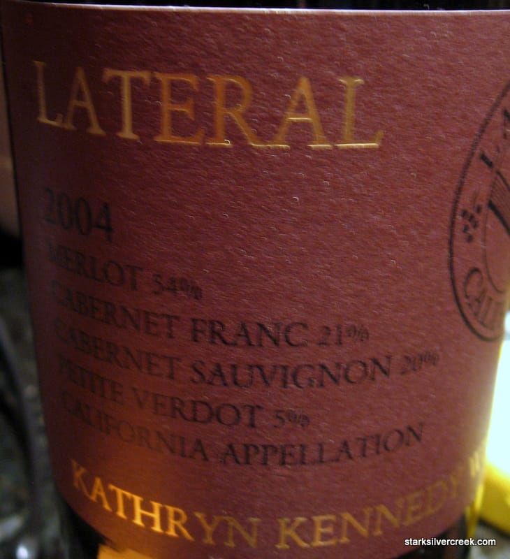 88 Kathryn Kennedy Lateral, Saratoga 2004. An elegant Bordeaux-style blend of Merlot (54%), Cab Franc (21%), Cab Sauvignon (20%) and Petit Verdot (5%). Nose is wonderfully balanced with berries, slight chocolate with hints of vanilla. Complex in the mouth with lots to discover, long finish. Pair with grilled meats, paella. $36 — C.S.