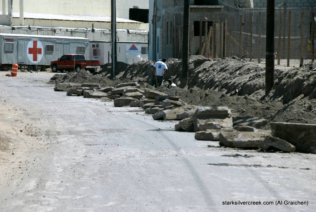 Also for those coming in on Tuesday, be careful on the Paseo as you enter Agua Viva. The road is only 1 car width wide (see picture) from the south side of what will become city center and the split where the “botanical garden” was to go. In addition, just past the Golf Club entrance the Paseo is only one lane (for both directions). With cars parked on that side, two lane traffic can be “interesting” if two large trucks are trying to get by.