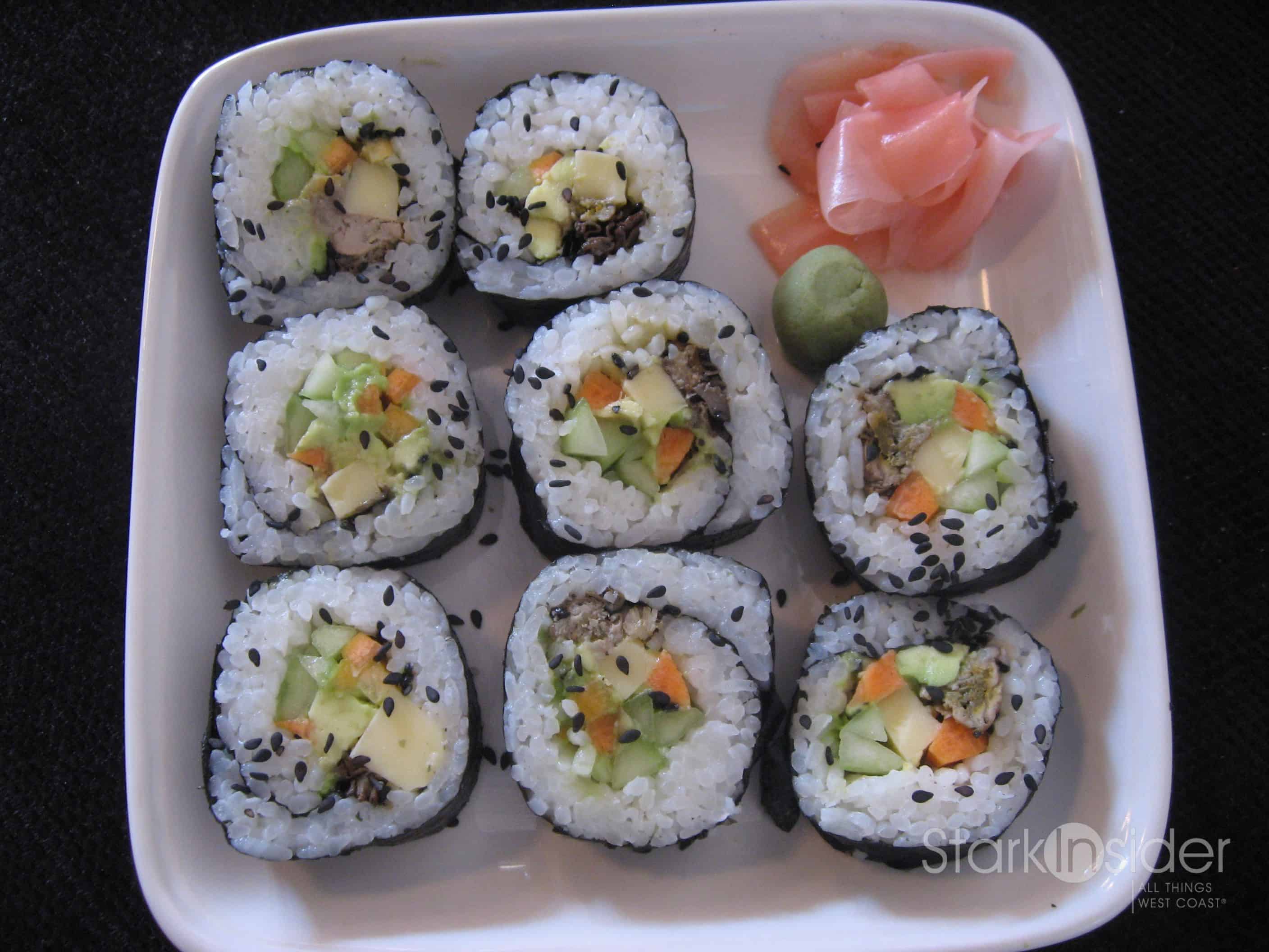 It was then that I understood the name of the sushi restaurant “Makia Sushi” which has “maki” in the root of the title. Maki refers to sushi rolls and this restaurant has a good selection of it relative to its only competition, Augie’s. Creative names for rolls include “Food”, “Satellite” and the ultimate, “Viagra” roll. I ordered a bunch of rolls including the Viagra roll if only for its name, and the Makia salad.