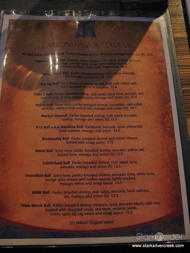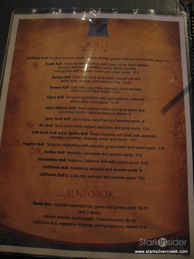 My first visit to Mikuni Sushi was a couple of months ago while I was in Sacramento. Their 49er roll left a memorable impression on me. So, when I found out Northstar at Tahoe had a Mikuni Sushi restaurant, I was happy to take one for the team and assess the quality of this establishment.