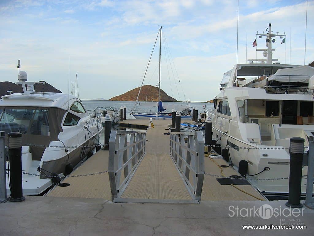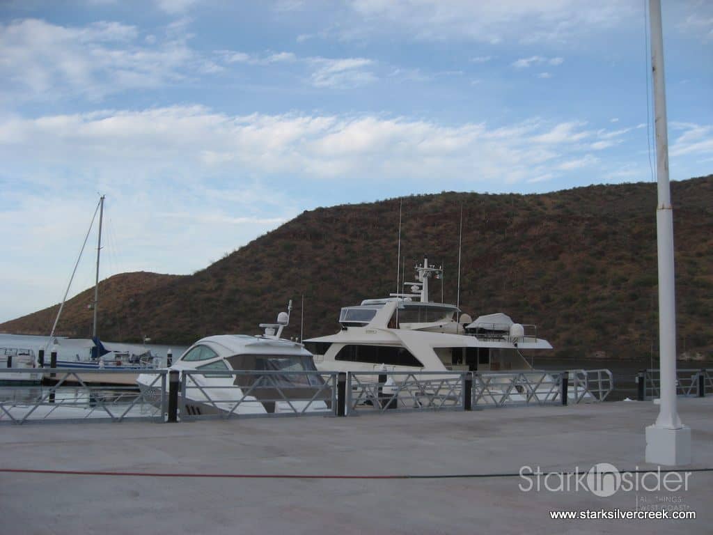 The marina looked very new and on that particular day, there were several boats harbored. It was amazing that surrounding this facility built by Fonatur, there was just dirt and vegetation. The marina provides boat slips ($11.43/feet/month), fuel with a surcharge of 20% for dock maintenance, cranes for lifting cargo, dry storage, car parking ($95.54/month),
