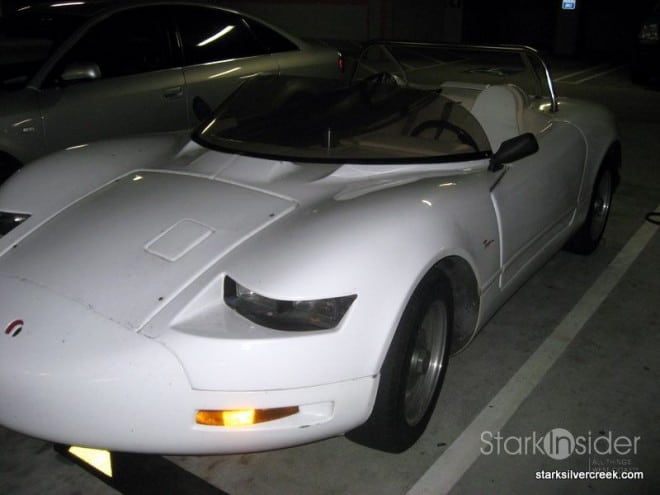 Some magical science dust must be in the air in San Jose today. When I was parking I noticed an interesting sports car under a protective cover.