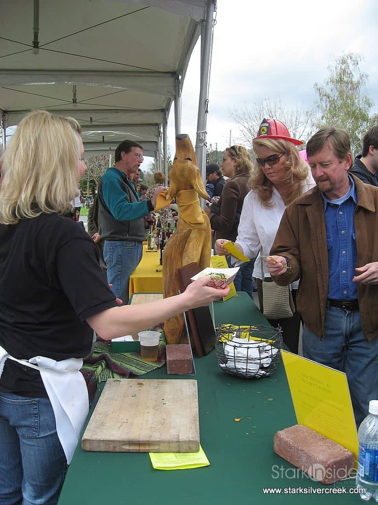 There was plenty of participation by local wineries, samplings of gourmet restaurant fare and artwork. The event is held by the Yountville Chamber of Commerce each year. Visitors can purchase a pass for the entire event or purchase a la carte tickets ($1/ticket). Signs at various tables would price their tastings or samples in units of tickets.