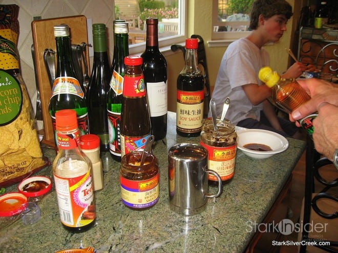 I made my own secret sauce with a combination of hoisin sauce, sesame oil, chilli sauce, white pepper and other jars of goodies. Everyone gets to make their own special sauce which is placed in a little dish next to your setting.
