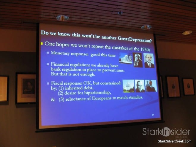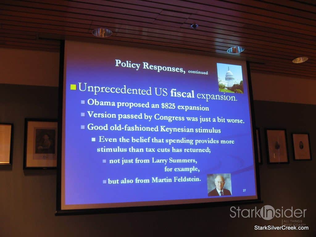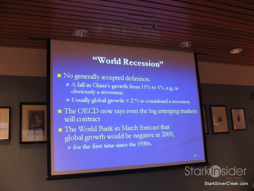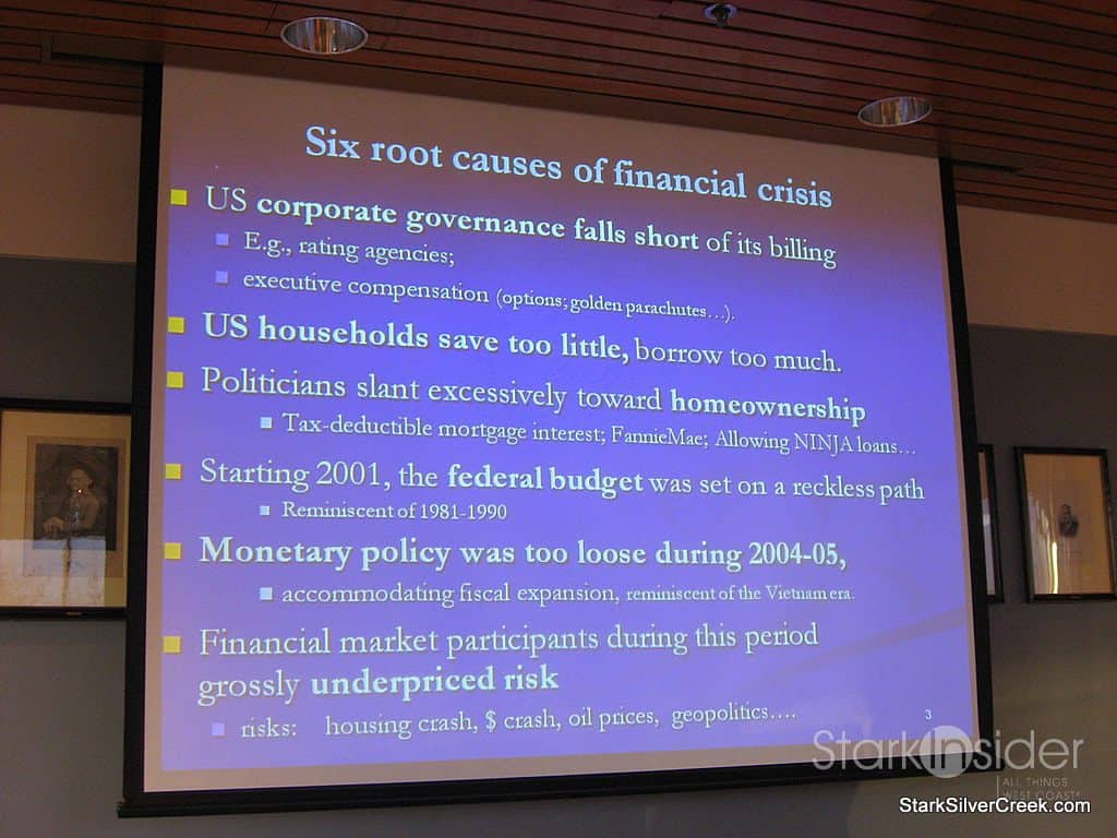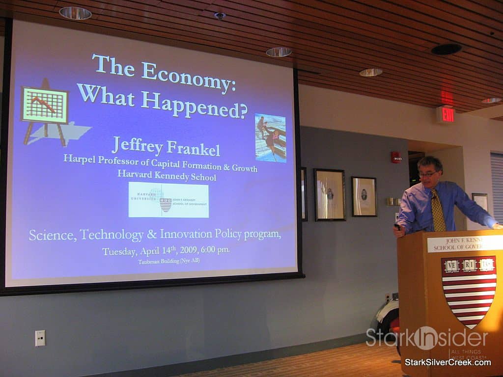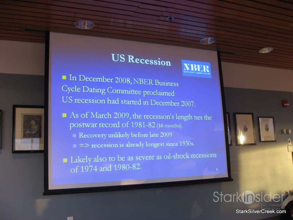 The first part of the presentation, as one would figure, notes that we are in a recession, hardly a surprise for anyone and not something that requires someone with the brains of Jeffrey Frankel to figure out. However, Jeffrey put it into context and was able to not only identify all the key causes, but also presented in a way that had them proportionally weighted.