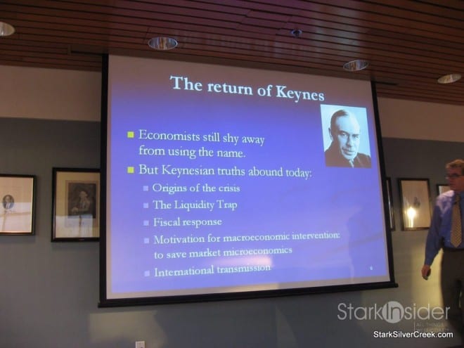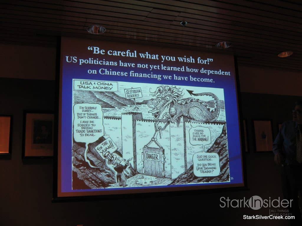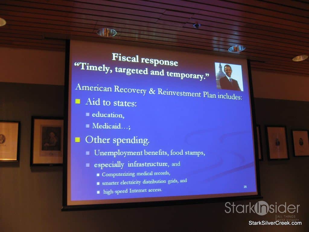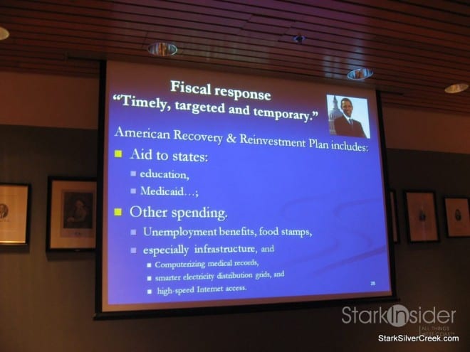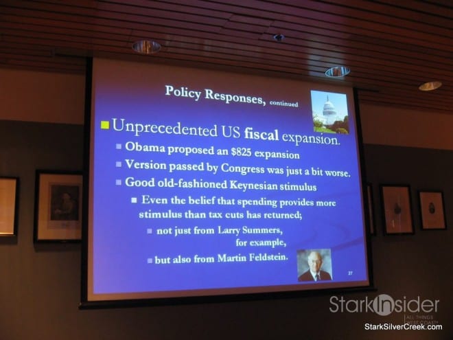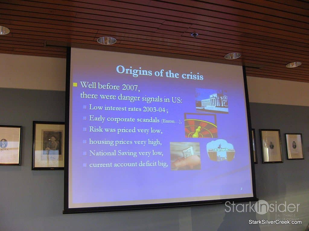 His presentation was entitled, “The Economy: What Happened?”, and if I had really reflected on the topic, I may not have been so quick to refuse the wine. In fact, I may have even asked to have the bottle left at the table.